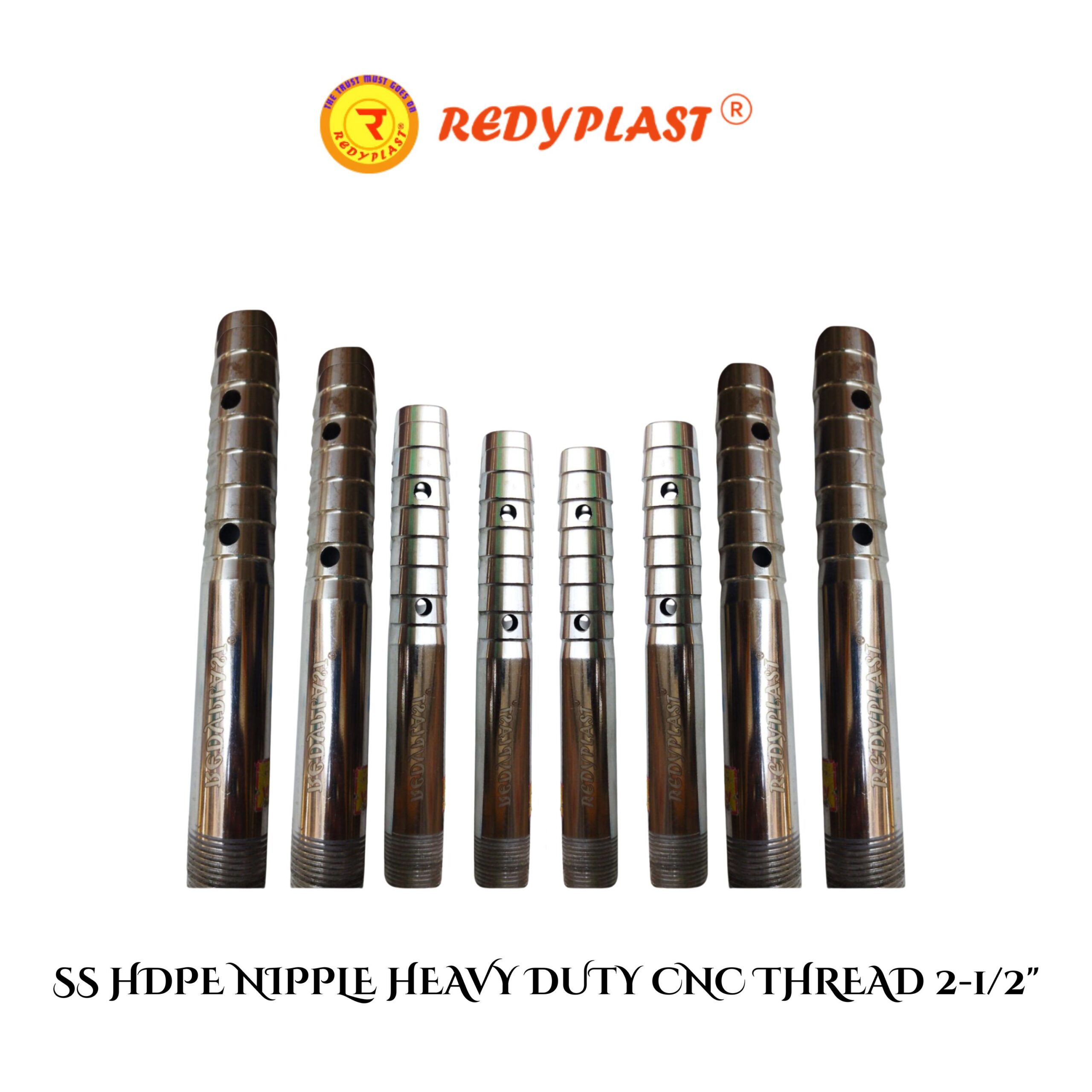 The REDYPLAST® SS HDPE Nipple Heavy Duty CNC Thread 2″ (50 MM, 27.5 CM) is a premium-grade connector designed for secure and leak-proof joining of HDPE pipes in irrigation and plumbing systems. Made from stainless steel reinforced HDPE material, it ensures long-lasting performance, excellent corrosion resistance, and precise thread fitting. Measuring 27.5 cm in length with a 50 mm diameter, this nipple is ideal for efficient water flow management and professional installations. With an MRP of ?531, it provides a reliable and cost-effective solution for demanding piping applications.